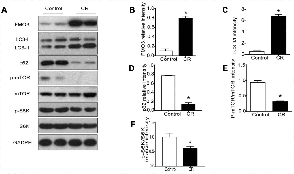 CR upregulates levels of FMO3 in liver and enhances mTOR-regulated autophagy
