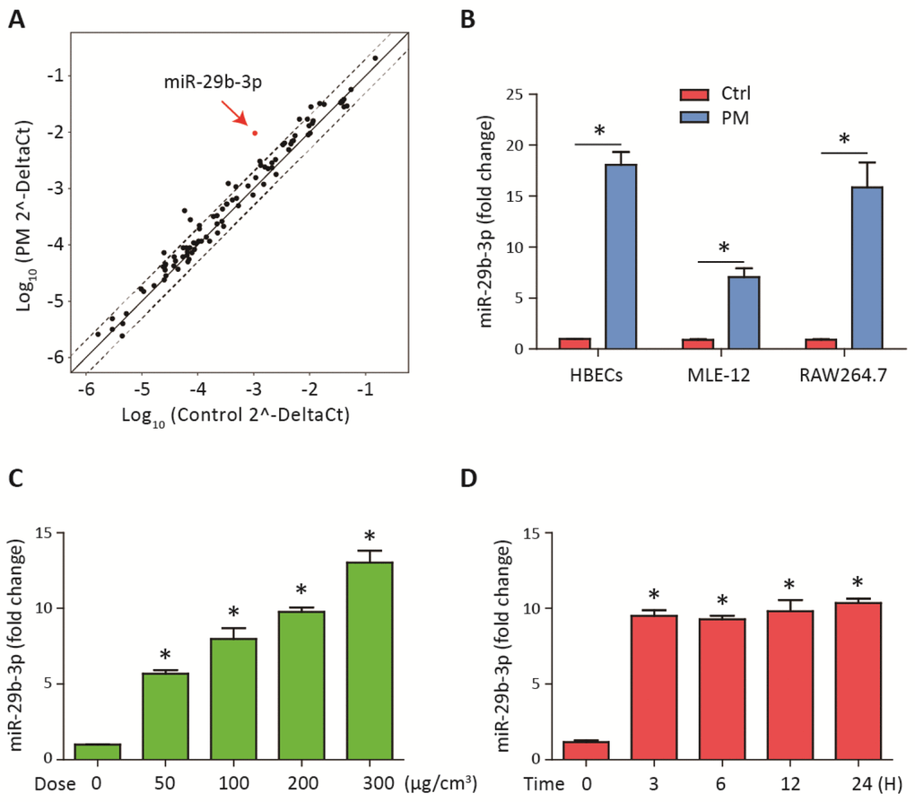 MiR-29b-3p expression was upregulated upon PM exposure