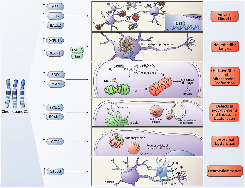 - 7. Wiseman FK, Al-Janabi T, Hardy J, Karmiloff-Smith A, Nizetic D, Tybulewicz VL, Fisher EM, Strydom A. A genetic cause of Alzheimer disease: mechanistic insights from Down syndrome. Nat Rev Neurosci. 2015; 16:564–74. https://doi.org/10.1038/nrn3983 [PubMed]