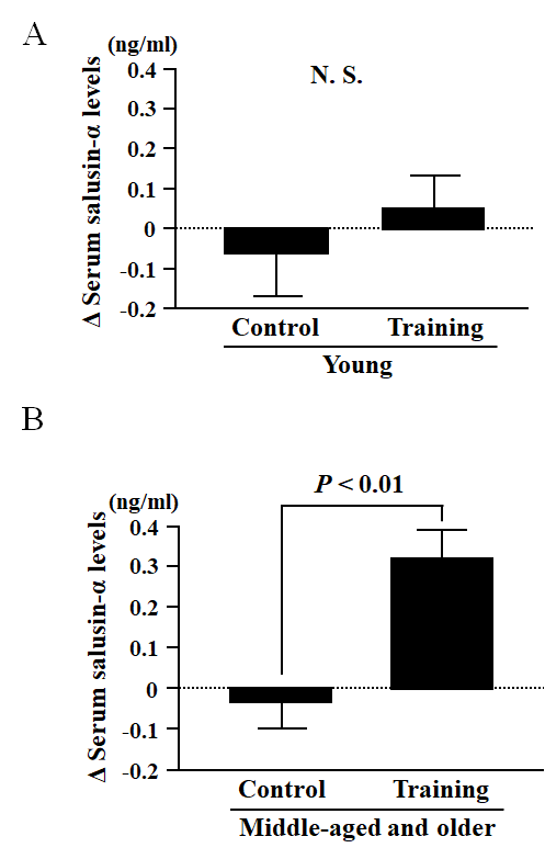 Table 4. Comparison of changes before and after the 8-week exercise training between Control and Training groups in the Young or Middle-aged and older groups.