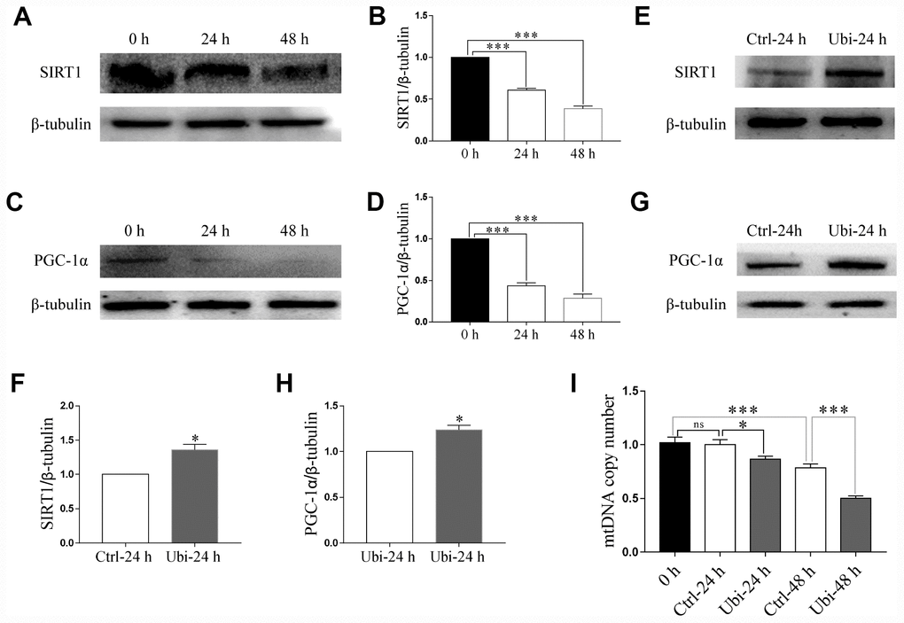 In total, 150 porcine oocytes per group were placed in 1x SDS sample buffer and heated at 98°C for 10 min. Proteins were separated by SDS-PAGE and transferred to polyvinylidene fluoride membranes. Next, the membranes were blocked in TBS containing 0.1% Tween 20 and 5% non-fat milk for 1 h and then incubated at 4°C overnight with anti-SIRT1 (1:1000; 13161-1-AP, Proteintech), PGC-1α (1:1000, 66369-1-Ig, Proteintech), PINK1 (1:1000; 23707, Abcam), LC3A/B (1:1000, 66139-I-IG, Proteintech), active-caspase 3 (1:1000, C8487, sigma), or β-Tubulin (1:1000, D-10, SC-5274, Santa Cruz Biotechnology). Then, the membranes were incubated at room temperature for 1 h with horseradish peroxidase-conjugated goat anti-mouse IgG or goat anti-rabbit IgG (1:1000; Santa Cruz Biotechnology). Blots were visualized using a CCD camera and UVI Soft software (UVITEC Cambridge).