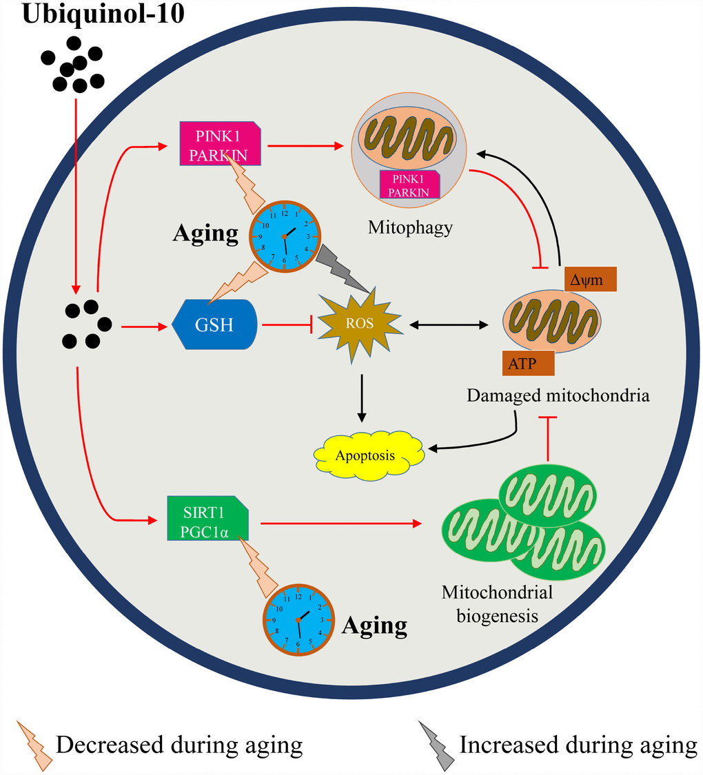 Ubiquinol-10 rescued aging-induced reduction of mitochondrial biogenesis and mitophagy
