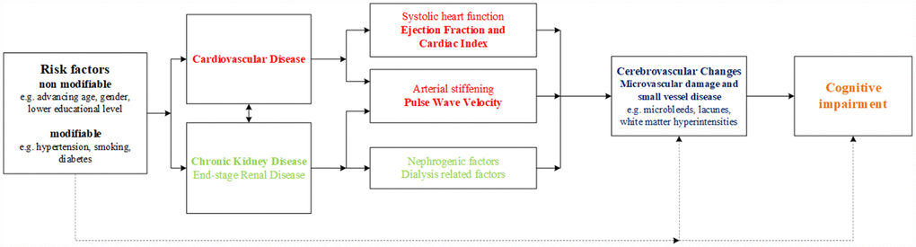 Figure 1 shows the hypothesis of the current study as well as the potential underlying mechanisms. The aim of this study was to investigate the association of cardiovascular structure and function with cerebrovascular changes and cognitive function in older patients with ESRD.