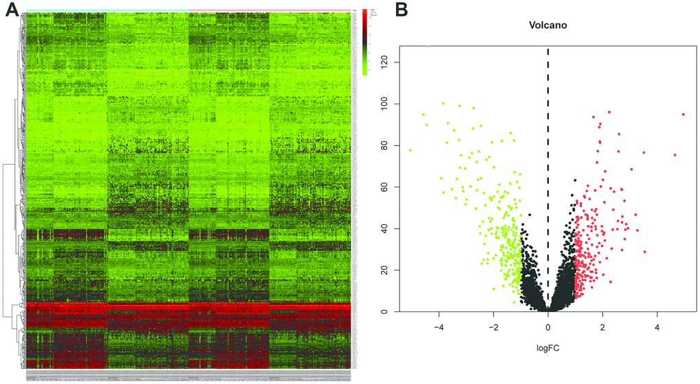 All 502 lincRNAs was identified as differentially expressed lincRNAs (DELs) between tumor tissues and adjacent normal tissues, including 223 up-regulated and 279 down-regulated genes (Figure 1A and 1B).