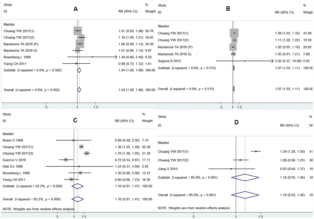 | Bladder | 7 | 1.16 (0.91, 1.47) | 83.2 | 0.000 | 3 | 1.16 (0.93, 1.46) | 85.8 | 0.001 | |||||||||||||||||||||||||||||||||||||||||||||||||||||||||||||||||||||||||||||||||||||||||||