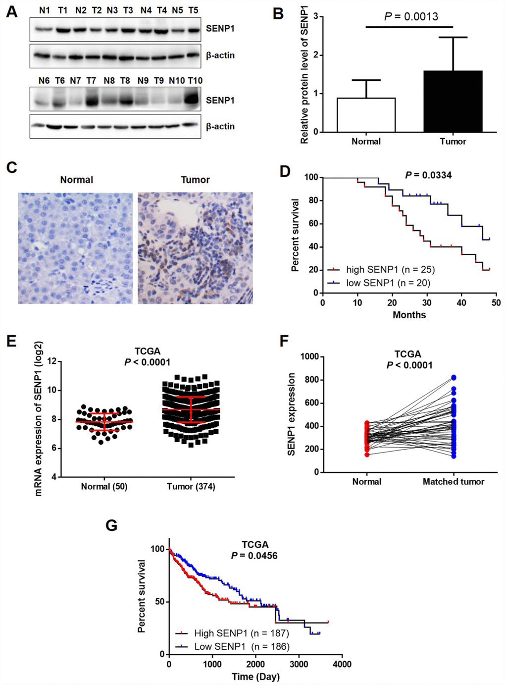 Upregulation of SENP1 in HCC tissues
