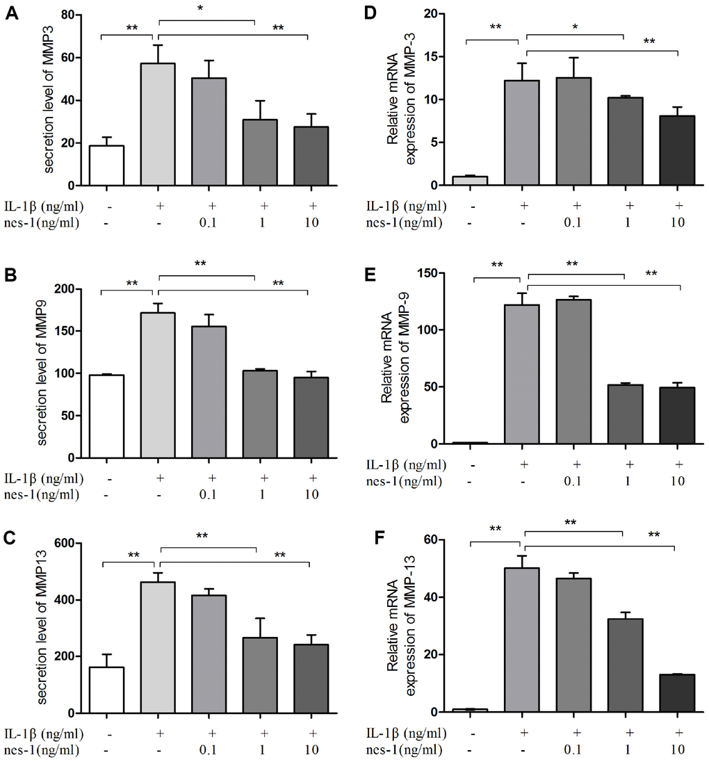 Effect of various nesfatin-1 concentrations on IL-1β-treated chondrocytes