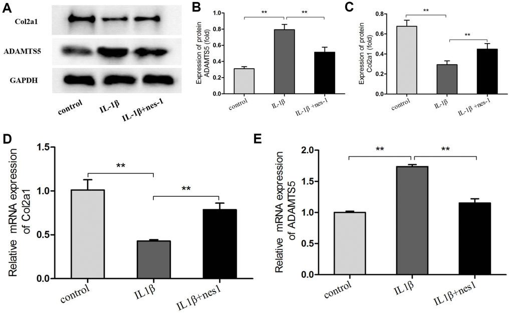 Nesfatin-1 decreased the MMPs and ADAMTS5, and increased the Col2a1 expression in chondrocytes