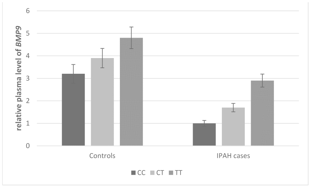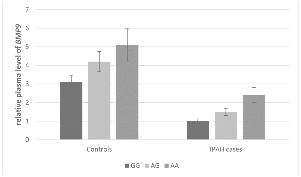Conclusively, this study provides evidence for genetic associations between two specific variants in the BMP9 gene and plasma level of BMP9, as well as the occurrence of IPAH. The results could contribute to the understanding of the mechanisms and molecular etiology of IPAH, which might lead to further biomedical or functional studies and recommendations for biomarkers of disease screening and personalized prevention that will finally reduce the incidence of this disease.