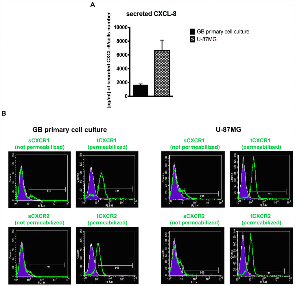 The GB cellular models show different levels of CXCL8 and CXCR1/CXCR2 associated with autocrine CXCL8 signalling