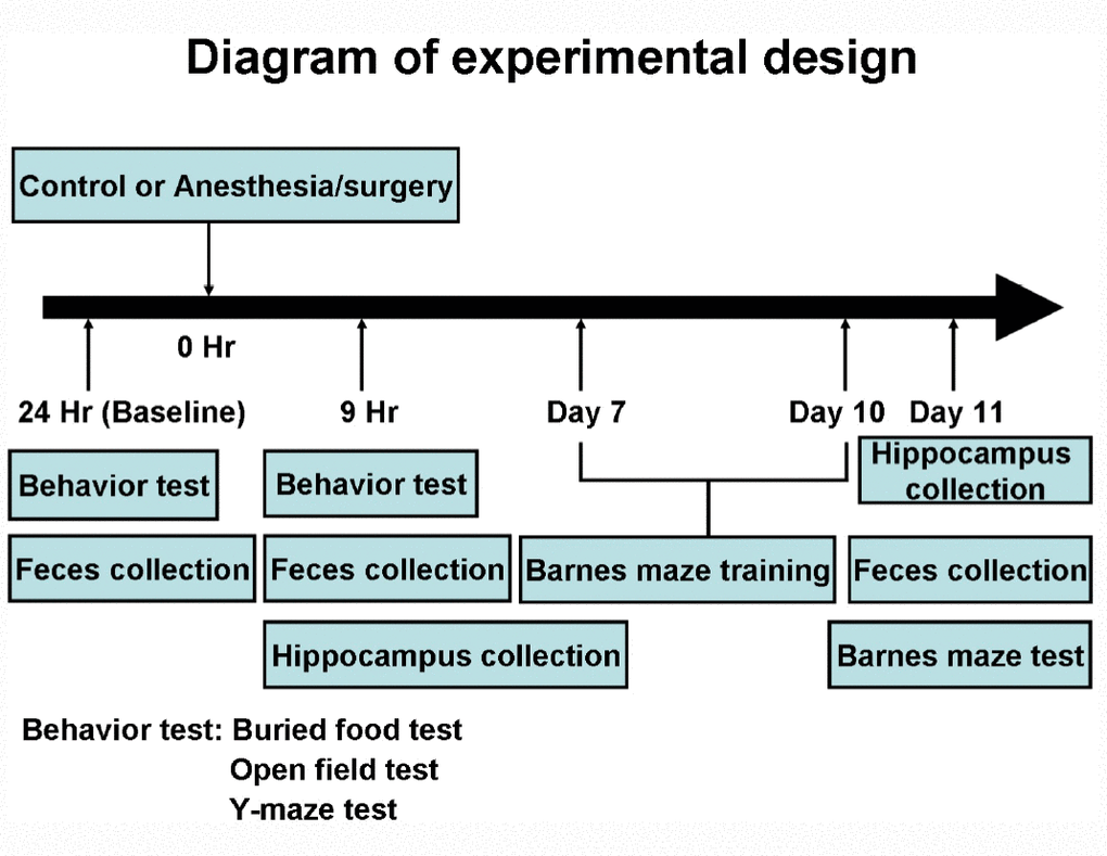 - 33. Jiang XL, Gu XY, Zhou XX, Chen XM, Zhang X, Yang YT, Qin Y, Shen L, Yu WF, Su DS. Intestinal dysbacteriosis mediates the reference memory deficit induced by anaesthesia/surgery in aged mice. Brain Behav Immun. 2019; 80:605–15. https://doi.org/10.1016/j.bbi.2019.05.006 [PubMed]