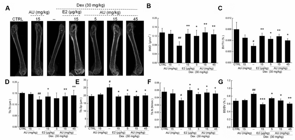 AU protected the Dex-damaged mice against osteoporosis