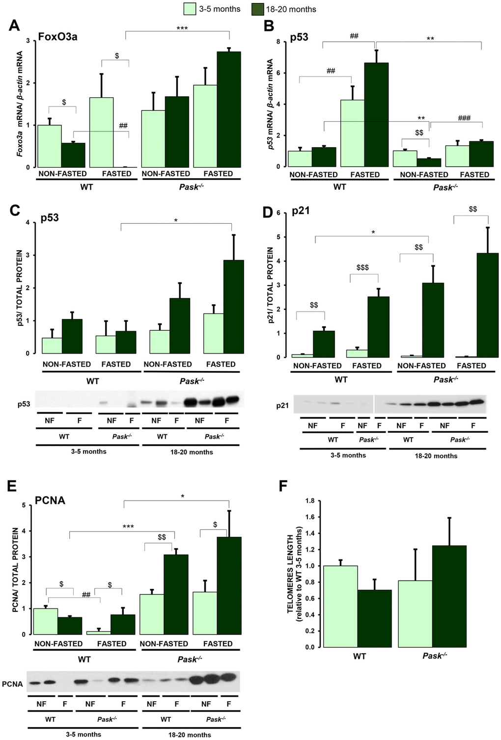 FoxO3a, p53 and PCNA proteins are modulated by aging and PASK dependency