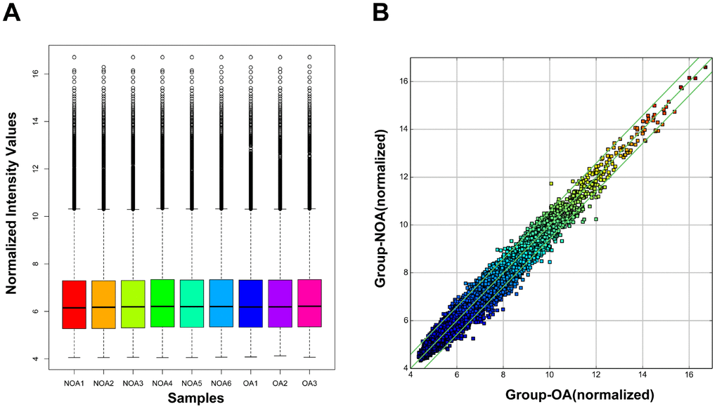 Nine RNA samples of testicular biopsies from NOA and OA patients were extracted using TRIzol (Invitrogen, USA) following the manufacturer’s protocol. The quantity and purity of total RNA was measured on the NanoDrop® ND-1000 spectrophotometer (Thermo Fisher, USA). RNA integrity was measured by denaturing agarose gel electrophoresis.