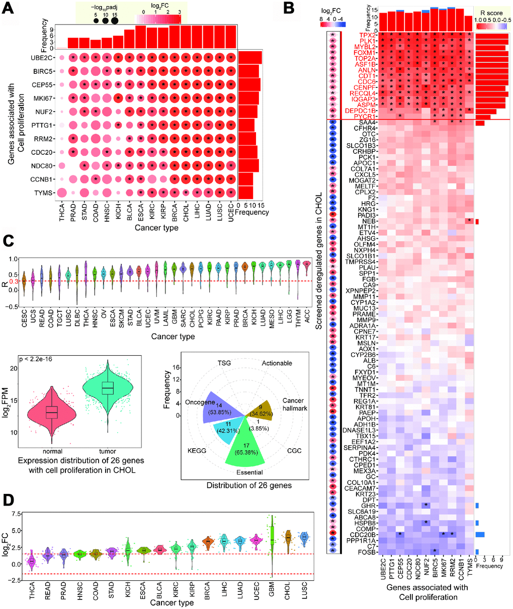 Taken together, using a systematic analysis across different cancer types and tissues, we identified 26 candidate genes associated with cell proliferation. These genes may be crucial for the occurrence and development of CCA. Further validation should focus on their roles as potential therapeutic targets.