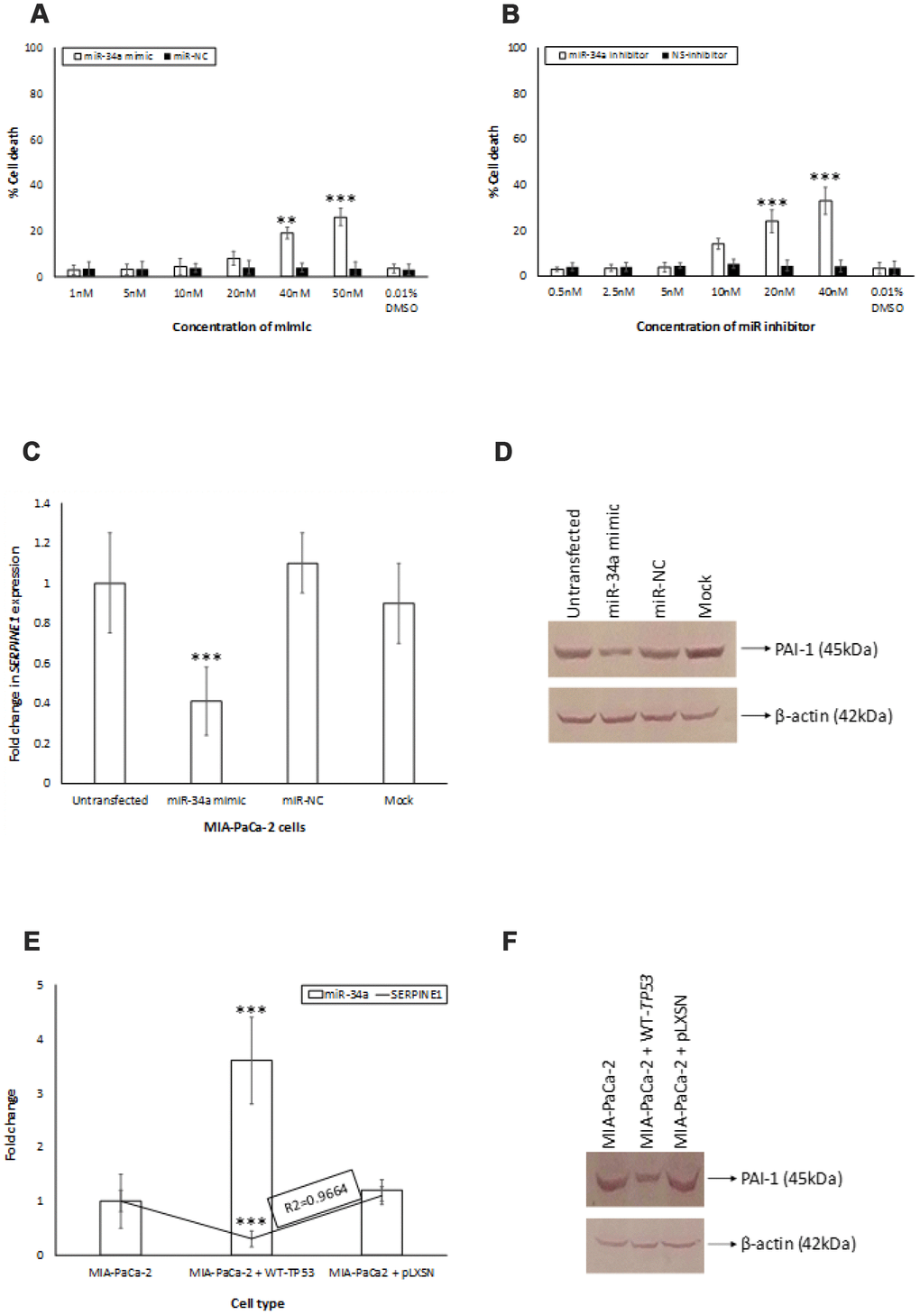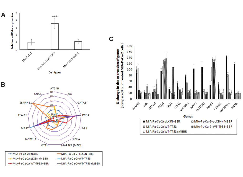 WT-TP53 enhances expression of miR-34a in MIA-PaCa2 cells