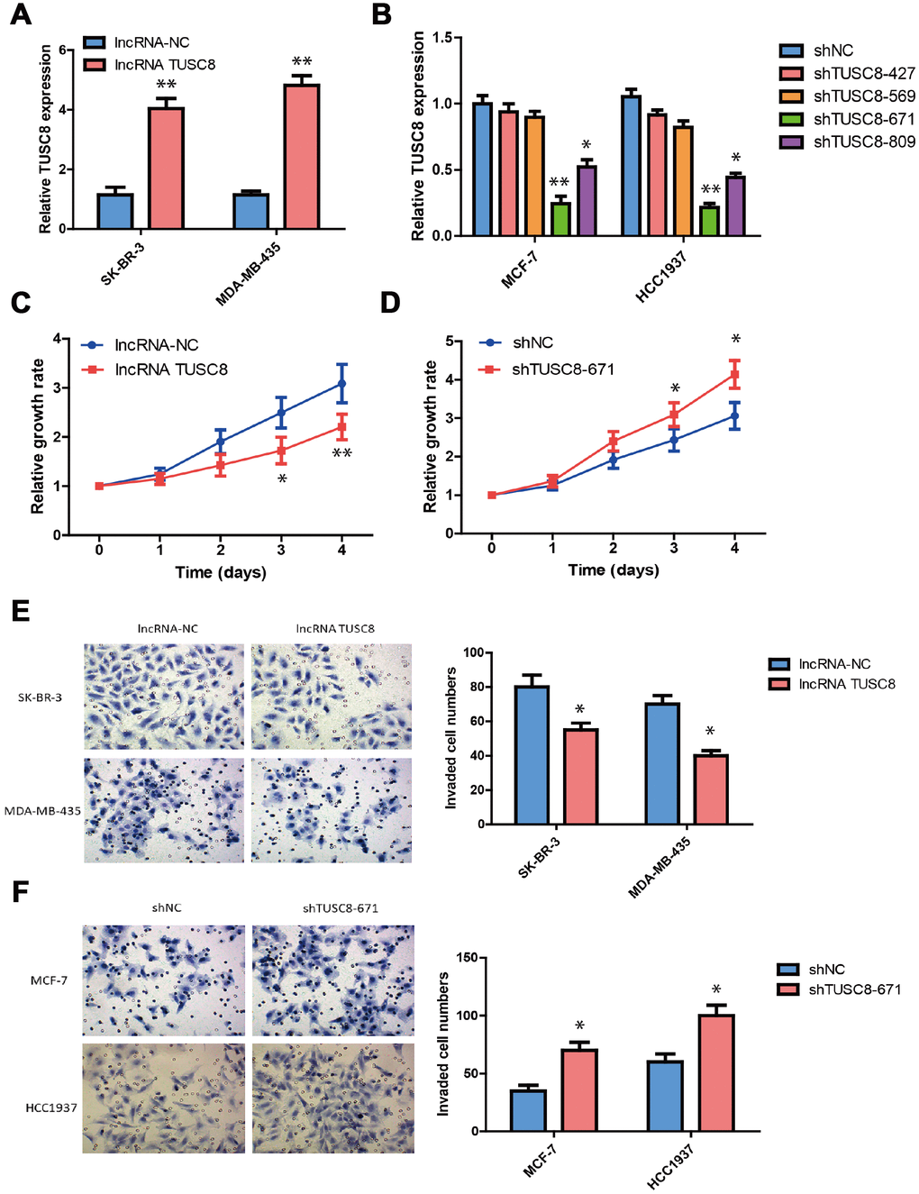 TUSC8 knock-down promotes the tumorigenicity of breast cancer cells in vivo