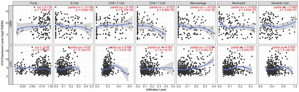 Table 6. H19 expression associated with immune infiltration level in glioma (partial Spearman’s correlation).