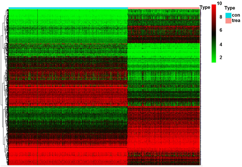 Based on glioma data integrated from UCSC Xena, DEGs were screened by limma [47] package (screening criteria: |logFC| > 2, FDR<0.05) and then their heatmap was plotted by pheatmap [48] package. Then GO and KEGG pathway analyses were performed on the screened DEGs: GO analysis included biological process (BP), cell component (CC) and molecular function (MF). KEGG (http://www.genome.jp/) was a systematic analysis method for gene function used to discover biological regulatory pathways. First, the Official Symbol of DEGs was converted into gene ID through org.Hs.eg.db package, clusterProfiler package [49] was used for GO and KEGG pathway analyses, and GOplot package [50] was employed for cluster analyses. Moreover, it was considered to have significant difference only when both P value and q value were less than 0.05.