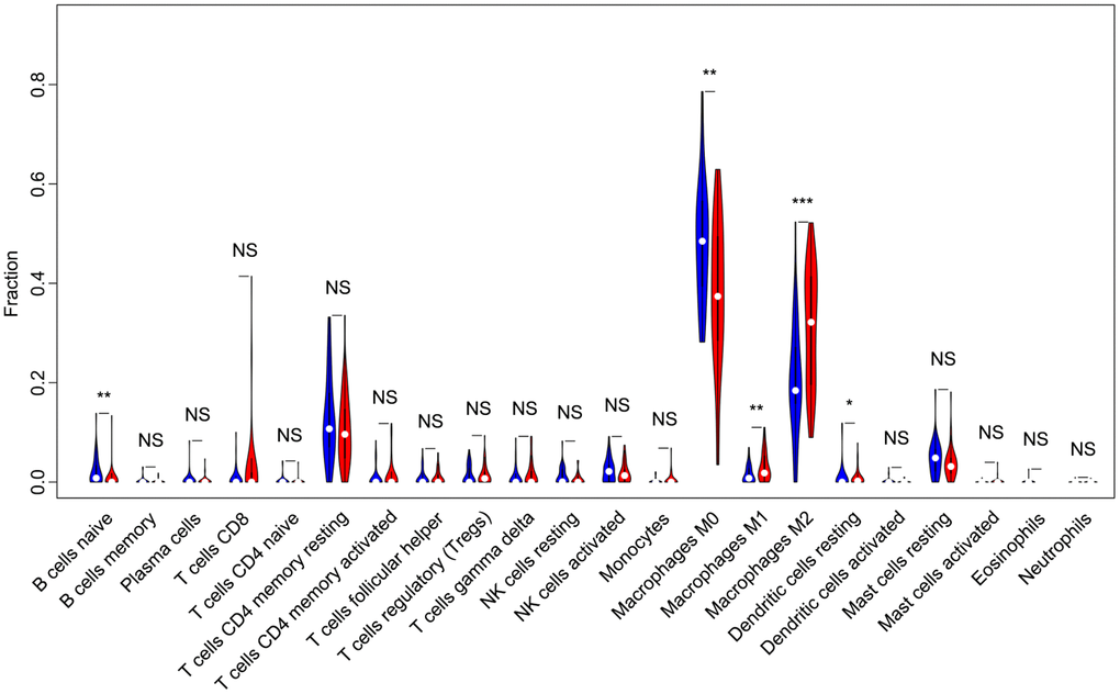Compositions of TIICs in OS patients with high and low immune score