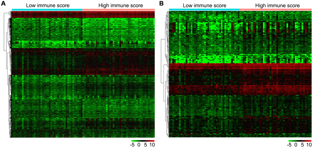 Gene expression profiles in high and low immune score OS tissues