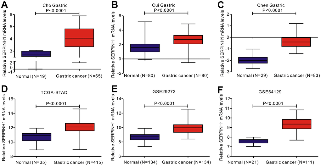 SERPINH1 mRNA levels are significantly upregulated in GC tissues