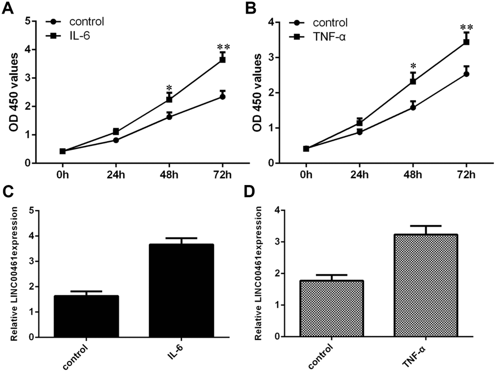 TNF-α and IL-6 induced the expression of LINC00461 in chondrocytes