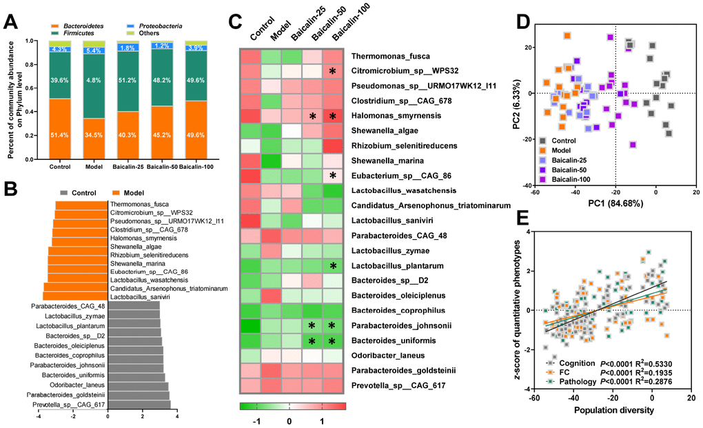 - 16. Ju M, Liu Y, Li M, Cheng M, Zhang Y, Deng G, Kang X, Liu H. Baicalin improves intestinal microecology and abnormal metabolism induced by high-fat diet. Eur J Pharmacol. 2019; 857:172457. https://doi.org/10.1016/j.ejphar.2019.172457 [PubMed]