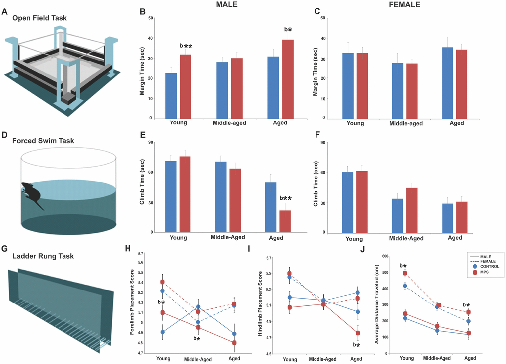 MPS induced sex-specific vulnerability to age-associated depressive-like behaviours