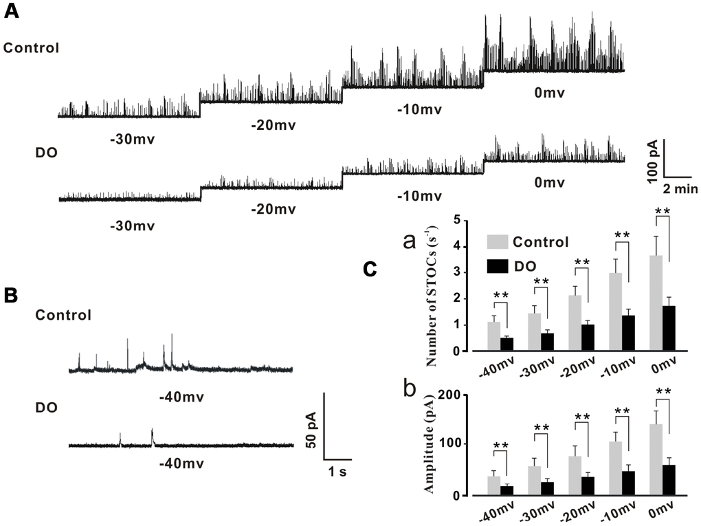 Decreased STOCs activity in detrusor myocytes from DO rats