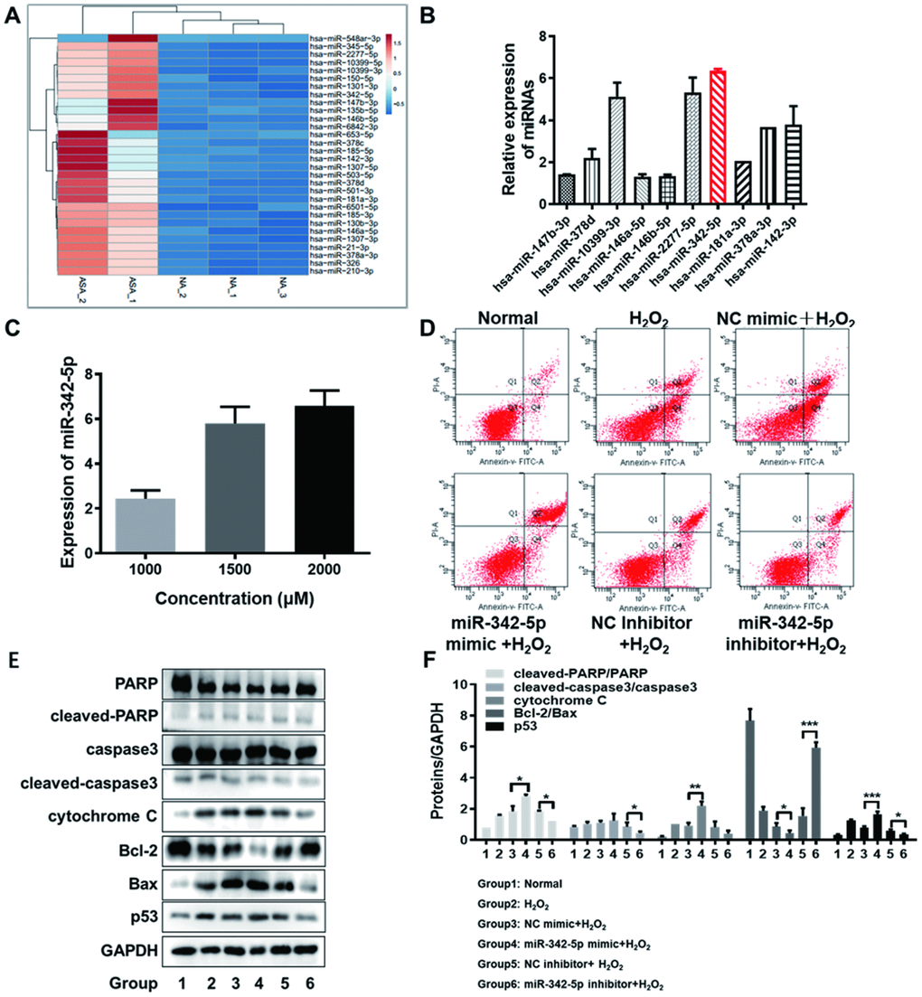 The aimed miRNA, miR-342-5p, is identified and promotes the apoptosis of HUVECs impaired by H2O2