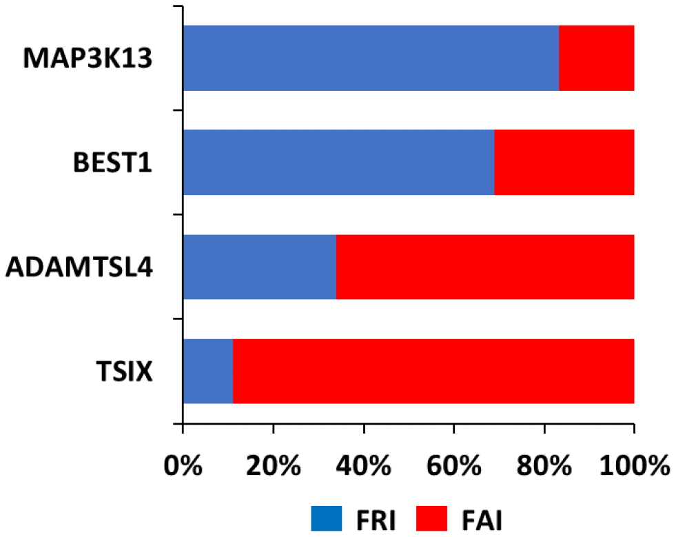 Table 1. Biological processes according to GO that were common for TSIX, BEST1 and ADAMTSL4 in the FRA group.