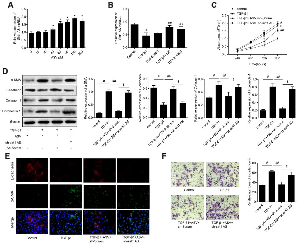 ASV inhibited fibroblast activation via upregulating sirt1 AS, in vitro