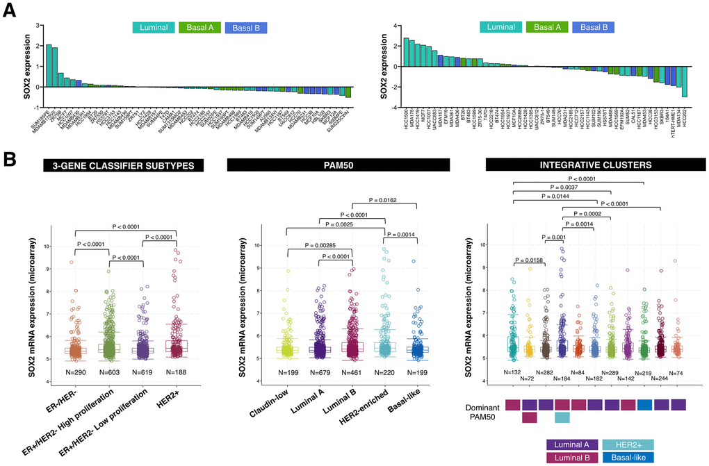 SOX2 profiling in breast cancer datasets