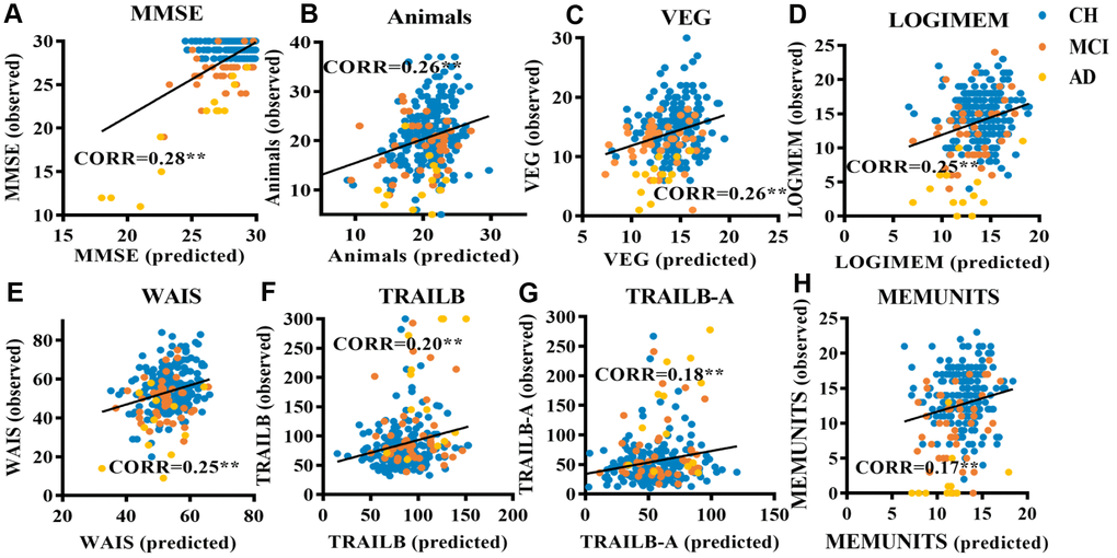 | Neuropsychological tests | CORR | p | MSE | p | Norm MSE | p |
