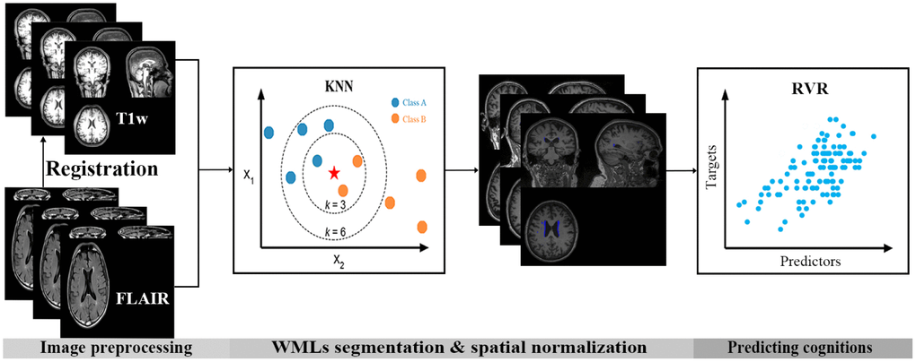 Over the last decades, rapid improvements in medical imaging and machine learning technology and greater availability of neuroimaging datasets have provided opportunities for automatic detection and early prediction of cognitive decline [16, 17]. In the present study, we investigated the association between spatial maps of WMLs and multidomain cognitive performance in elderly adults, using MRI (structural MRI and diffusion tensor imaging/DTI) and various neuropsychological assessments of cognition (nonimpaired, mild cognitive impairment/MCI and dementia) with participants in the Open Access Series of Imaging Studies-3 (OASIS-3) [18]. We also explored whether it is possible to predict individual differences in cognitive function using the spatial probability maps of WMLs.