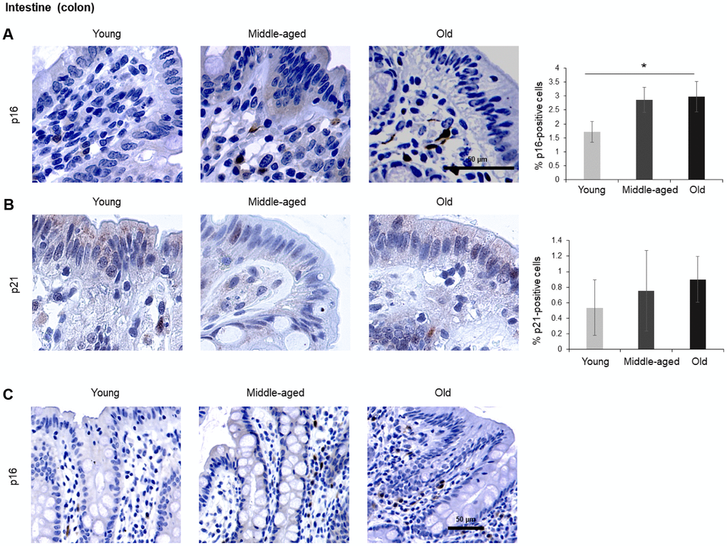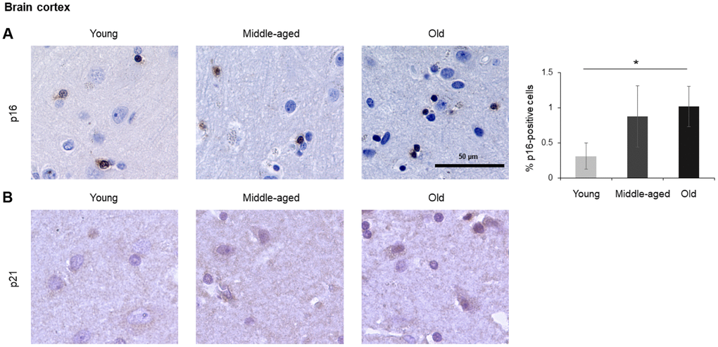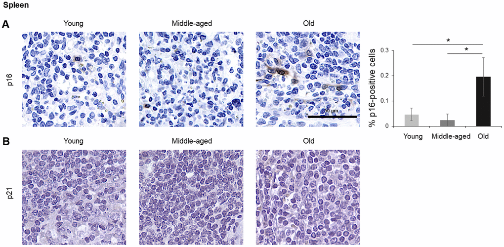 Table 2. Summary of the fold differences in p16-positive and p21-positive cells in middle-aged and old participants relative to young.