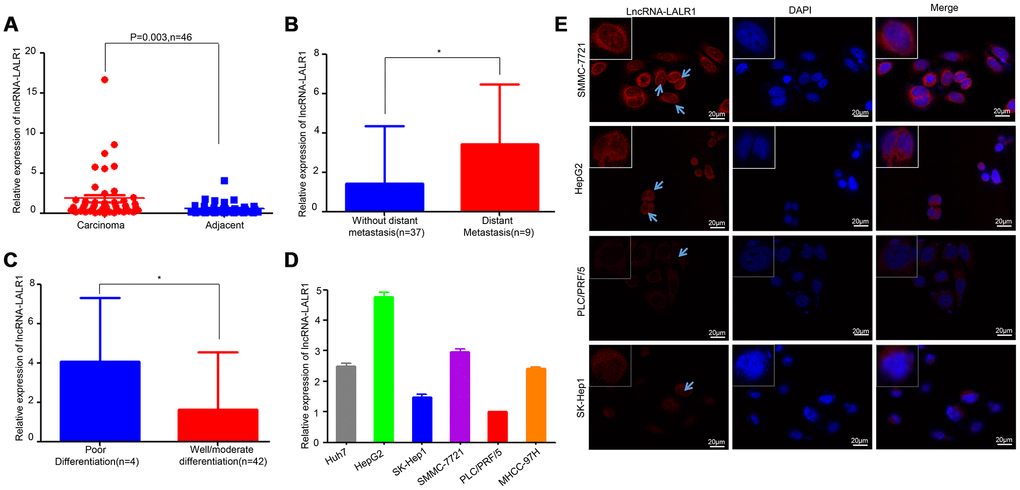 Overexpression of lncRNA-LALR1 correlates with advanced TNM stage, poor differentiation, and distant metastasis of HCC
