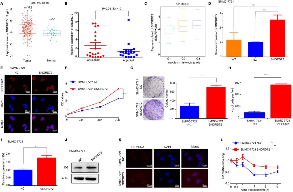 These results demonstrated that SNORD72 is highly expressed in HCC tissues mediates the pro-tumor effect of lncRNA-LALR1 in HCC via stabilzing ID2 mRNA.