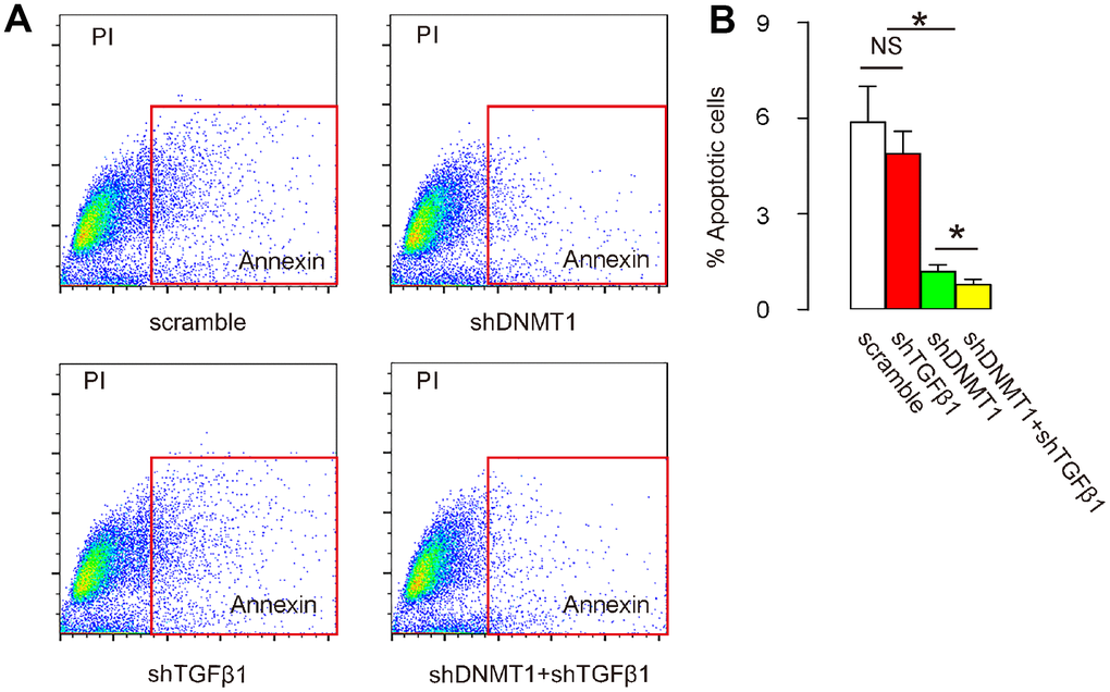 Co-application of shDNMT1 and shTGFβ1 reduces cell apoptosis in LDD tissue
