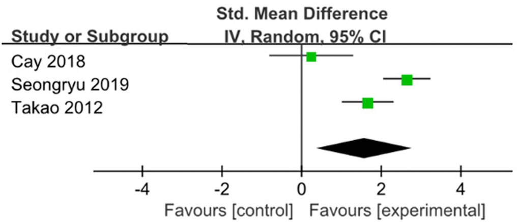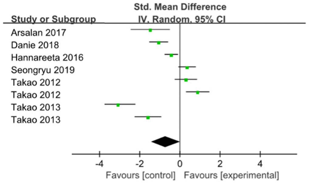 Two reviewers extracted all data recorded as authors, publication year, number of cases, mean age of participants, study setting and outcomes. Disagreements between them were settled in consensus-based manner. Review Manager software was used to conduct post-intervention data in meta-analyses. A random-effects model was used for all meta analyses. For continuous data, mean differences or standardized mean difference were calculated with 95% CIs. When outcomes were assessed at multiple follow-up time points, data from the last exercise time point were chosen to be included in meta-analyses. Data homogeneity was assessed using the I2 statistic, where a value of > 50% indicated substantial heterogeneity. If substantial heterogeneity existed, included studies were significantly different to each other in terms of clinical factors, such as participant characteristics or intervention.
