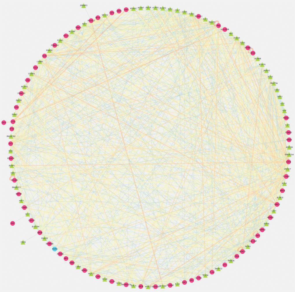 Clinical data downloaded from the TCGA data portal were collected to extract the overall survival time. Later, the survival related IRGs were selected upon univariate COX analysis carried out using the survival package of R software. To explore the interactions between these genes, a regulatory network was constructed. TFs are the important molecules that directly control the gene expression level. The Cistrome Cancer is a data source that integrates the cancer genomic data from TCGA with over twenty-three thousand ChIP-seq and chromatin accessibility profiles, which can provide the regulatory links between TFs and transcriptomes [50]. Generally, TFs are compared with differential genes of all transcriptional data, so as to identify the differentially expressed TFs and to draw the heatmap and volcano map. Besides, the differential TFs are also connected with the survival-related immune genes and the mapping regulatory network using the Cytoscape software version 3.7.2 [51].