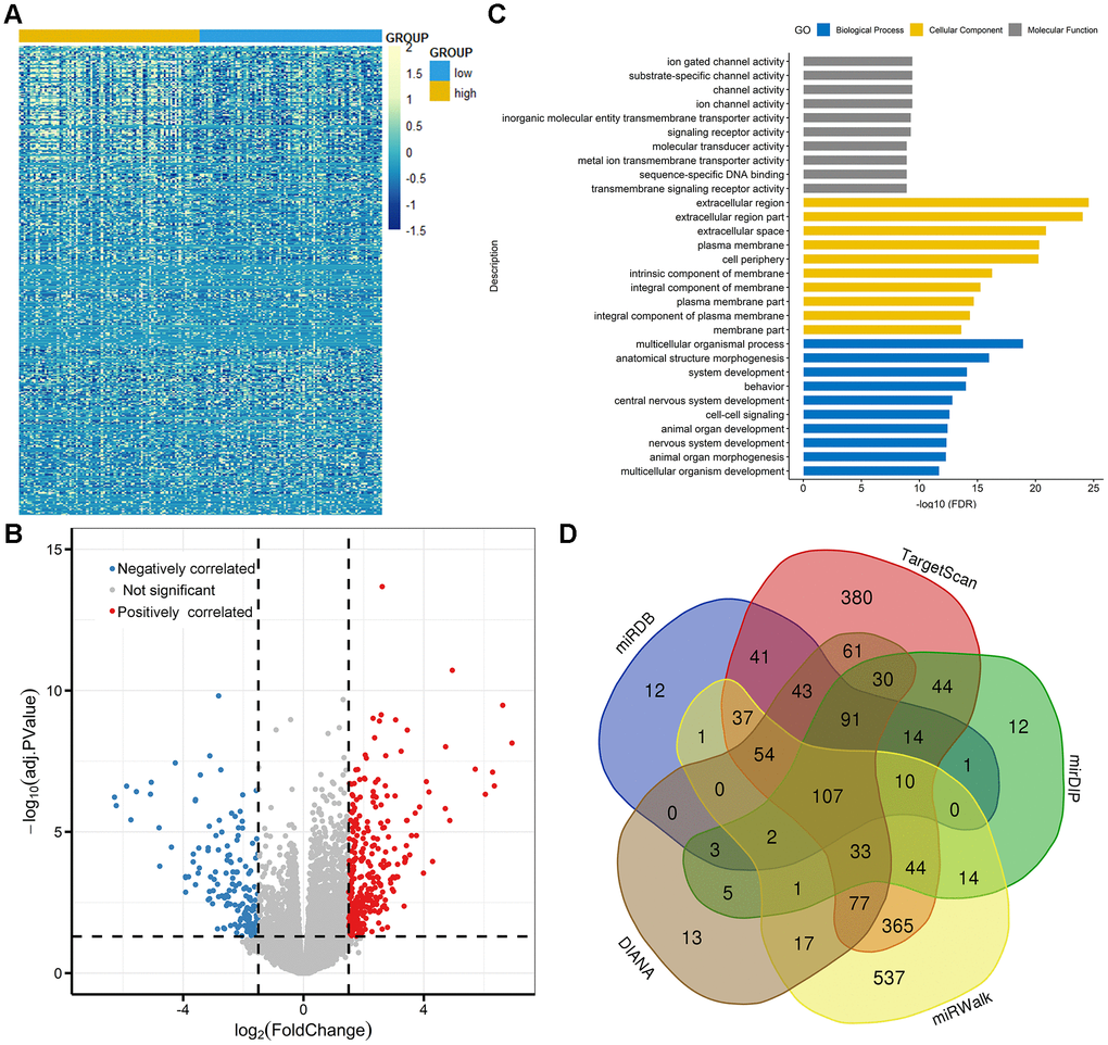 To gain insights into the biological function of TET3 in AML, we first compared the transcriptomes of TET3high and TET3low groups. A total of 464 differentially expressed genes were identified (FDR<0.05, |log2 FC|>1.5; Figure 6A and 6B; Supplementary Table 2), in which 300 genes were positively correlated with TET3 expression, and 164 were negatively correlated. Positively correlated genes such as CDKN2B and ZIC2 were reported to have anti-leukemia effects [16, 17]. Among the negatively associated genes, several genes including PAX2, IL2RA, SOX11, and PAK7 played as oncogenes in leukemia [18–21]. Furthermore, the Gene Ontology analysis was also showed in Figure 6C.