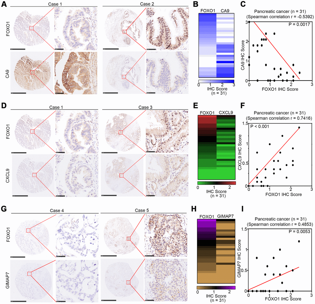 CA9, CXCL9, and GIMAP7 correlate with FOXO1 in PAAD patient specimens