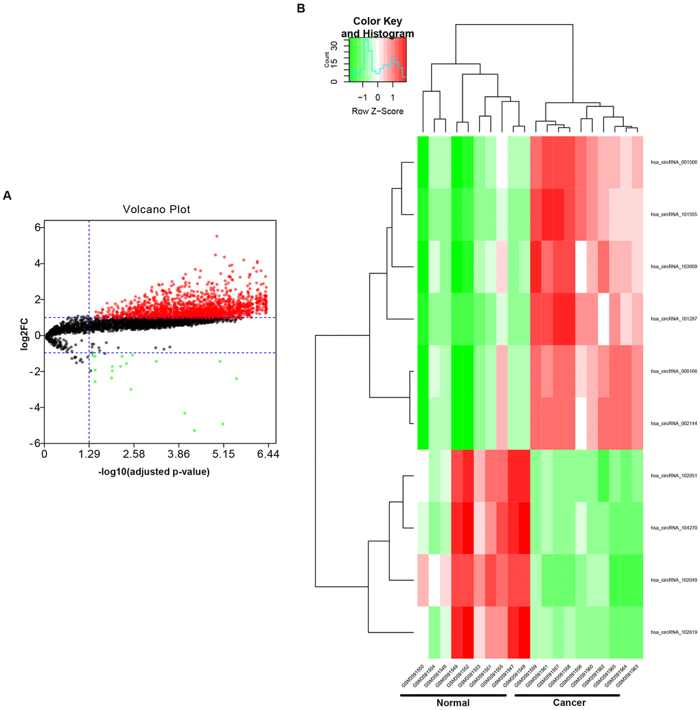 Table 1. The potential differentially expressed circRNAs (DECs) between colorectal cancer tissues and adjacent normal tissues.