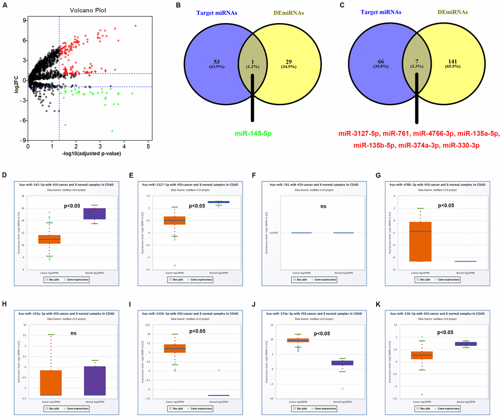 The genes that commonly appeared in target genes set and DEGs set were considered as potential target genes of miRNAs in CRC. Expression of these target genes were further confirmed using TCGA data using starBase database [31, 32]. P < 0.05 was considered as statistically significant.