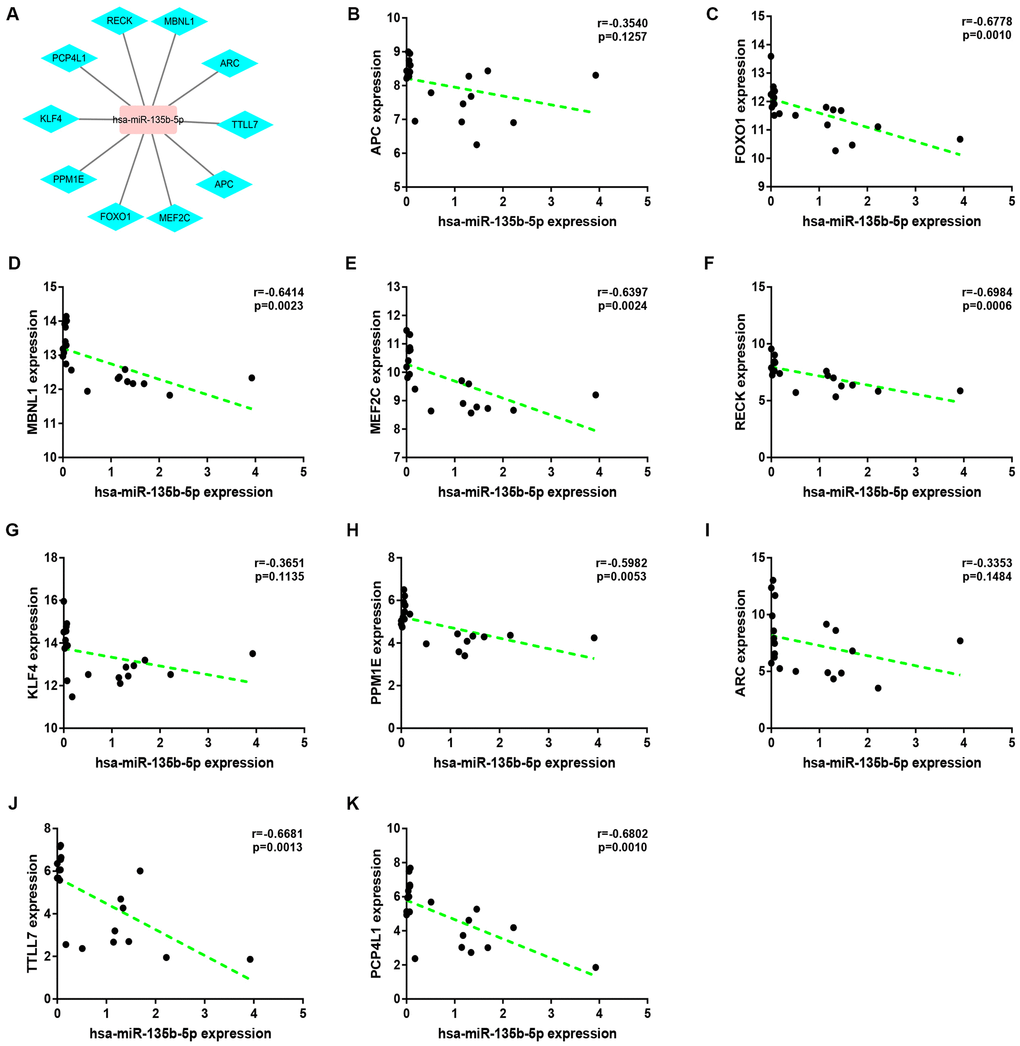| hsa-miR-135b-5p | APC | -0.185 | 8.20E-05 |