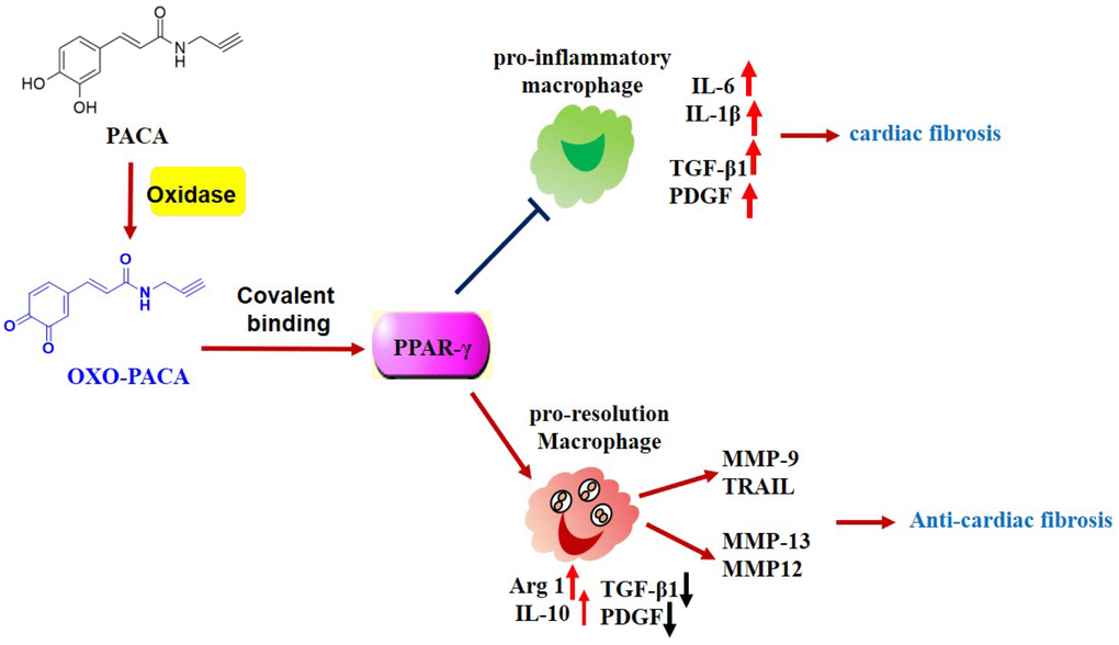In conclusion, the present study demonstrated that PACA effectively attenuated cardiac fibrosis and skewed macrophage polarization towards a resolving M2a-like phenotype via covalent binding to PPAR-γ. Ultimately, these results may pave the avenue to develop PACA as a new therapeutic reagent for the treatment of cardiac fibrosis and related cardiovascular diseases.