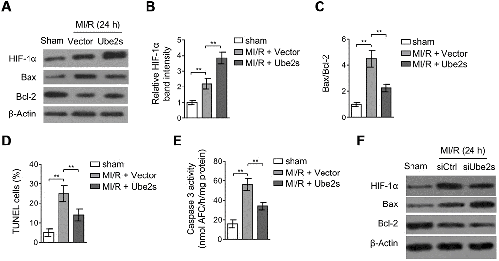 Ube2s augments HIF-1α activation and decreases apoptosis after MI/R injury