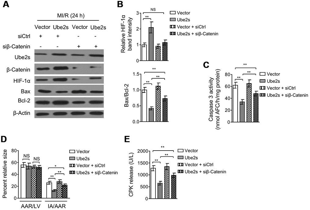β-Catenin knockdown abrogates Ube2s-augmented HIF-1α activation and diminishes protective effect on MI/R injury
